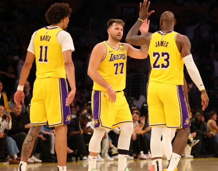 湖人队:东契奇、斯玛特、詹姆斯、艾顿、拉拉维亚。
